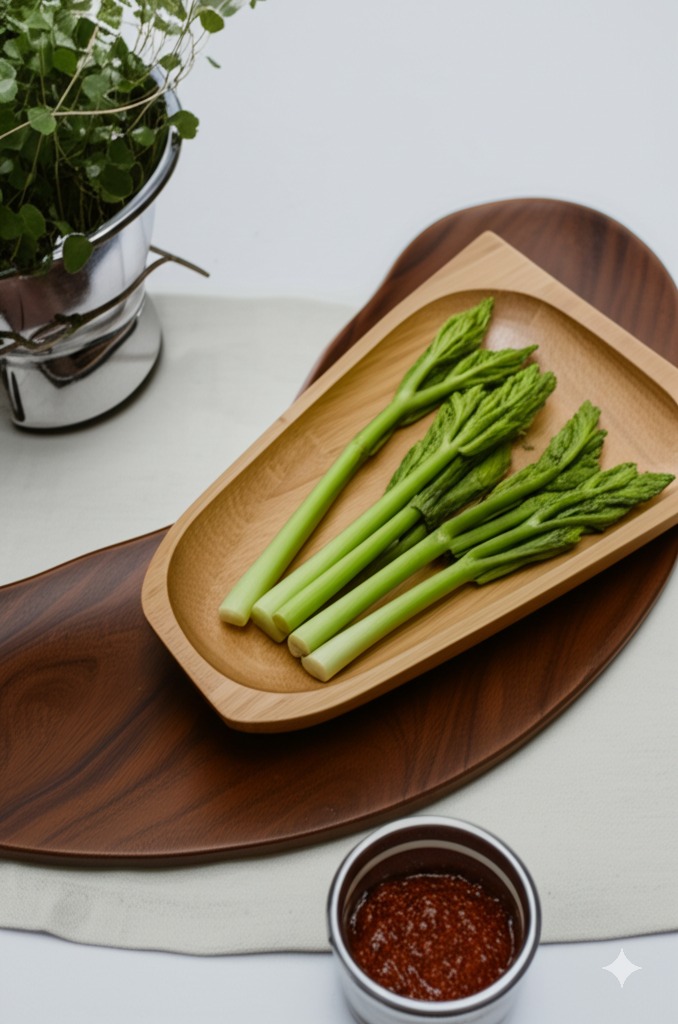 아이들도 좋아하고 밥반찬이나 간식, 술안주로도 훌륭한 메뉴입니다. 깨끗하게 손질한 두릅에 튀김가루나 밀가루를 가볍게 묻힌 뒤, 튀김 반죽(튀김가루+물 또는 계란물)을 입혀 바삭하게 튀겨냅니다. 튀김옷의 바삭함과 두릅의 부드러움, 그리고 튀겨지면서 더욱 진해진 두릅의 향이 어우러져 별미 중의 별미입니다. 갓 튀겨낸 따끈한 두릅 튀김은 그야말로 젓가락을 멈출 수 없게 만듭니다.
